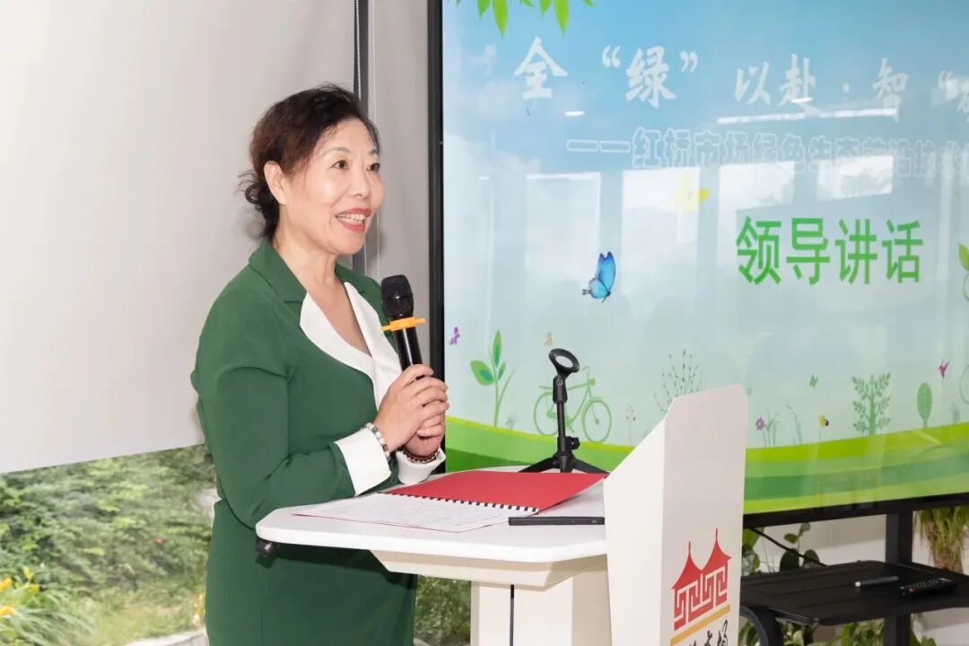 北京市发展和改革委员会执法处三级调研员吴云首先对红桥市场通过“红色党建引领,绿色低碳发展”的实践, 实现企业生态、经济和社会效益共赢给予了充分肯定。她指出,红桥市场见证了北京经济社会发展的变迁。当前,绿色发展已成全球共识,北京正建设“国际绿色经济标杆城市”与“全球数字经济标杆城市”。吴云强调,在此背景下,红桥市场党组织积极作为, 探索绿色生态前沿技术在既有公共建筑的应用,为城市更新和产业发展树立了标杆。她希望与会各方以党建为纽带, 深化交流合作,发挥各自优势,在绿色转型道路上迈出新步伐,在党组织的坚强领导下, 共同为推动经济社会全面绿色转型、实现美丽中国建设贡献北京智慧。