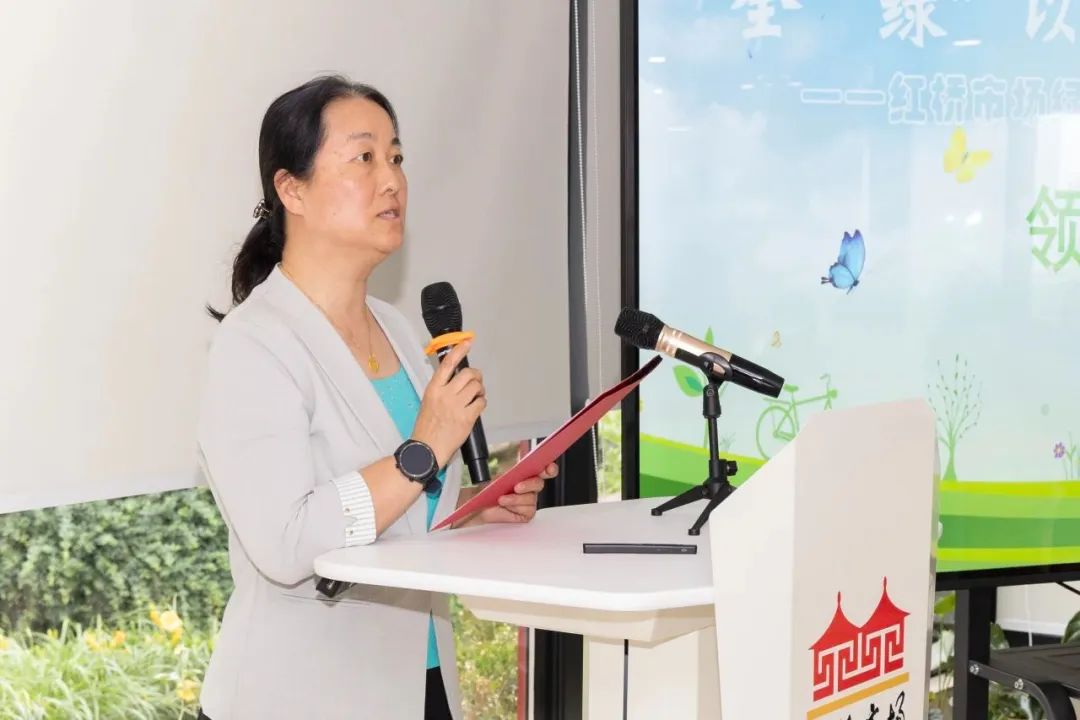 东城区生态环境局副局长郑欣首先对红桥市场积极探索绿色发展模式,在智慧物业建设方面不断创新,以实际行动践行绿色低碳理念给予了肯定。她指出,今年六五环境日的主题是“美丽中国我先行”,这深刻体现了新时代对生态环境保护的新要求。郑欣强调,东城区将以美丽北京建设为统领,以党建为引领, 持续深入打好污染防治攻坚战,积极推进“美丽细胞”建设。她希望红桥市场等企业党组织能进一步发挥战斗堡垒作用, 加大绿色技术创新应用力度,践行绿色发展理念,党员带头先行,携手助力美丽东城建设。