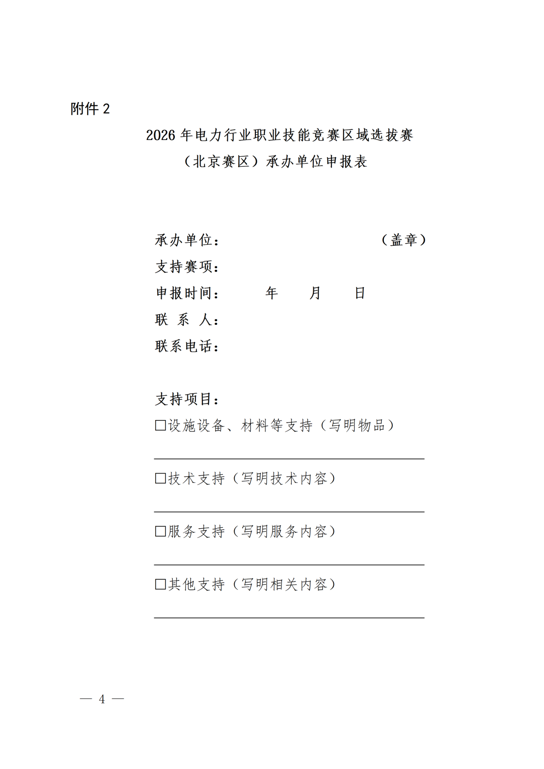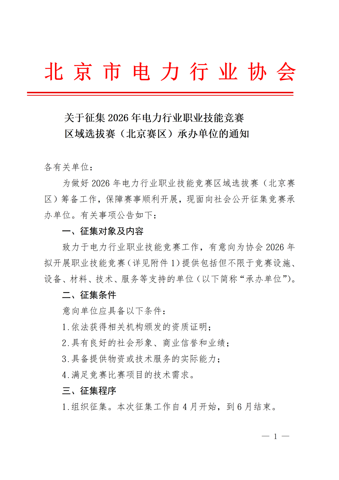 关于征集2026年电力行业职业技能竞赛区域选拔赛(北京赛区)承办单位的通知